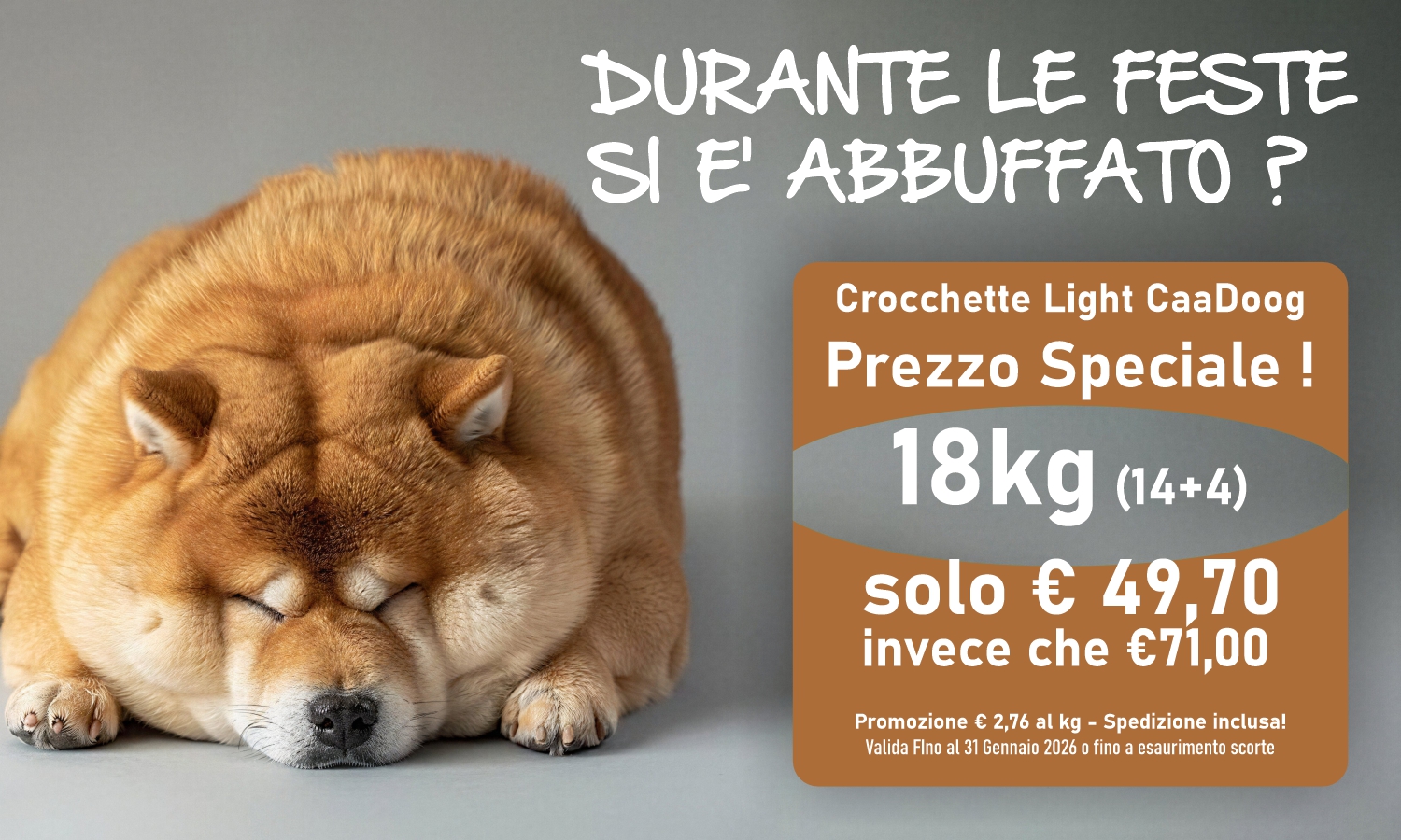 Ordinando il sacco da 14kg o 18kg non pagi le spese di spedizione, e non fai fatica a portare a casa le crocchette!