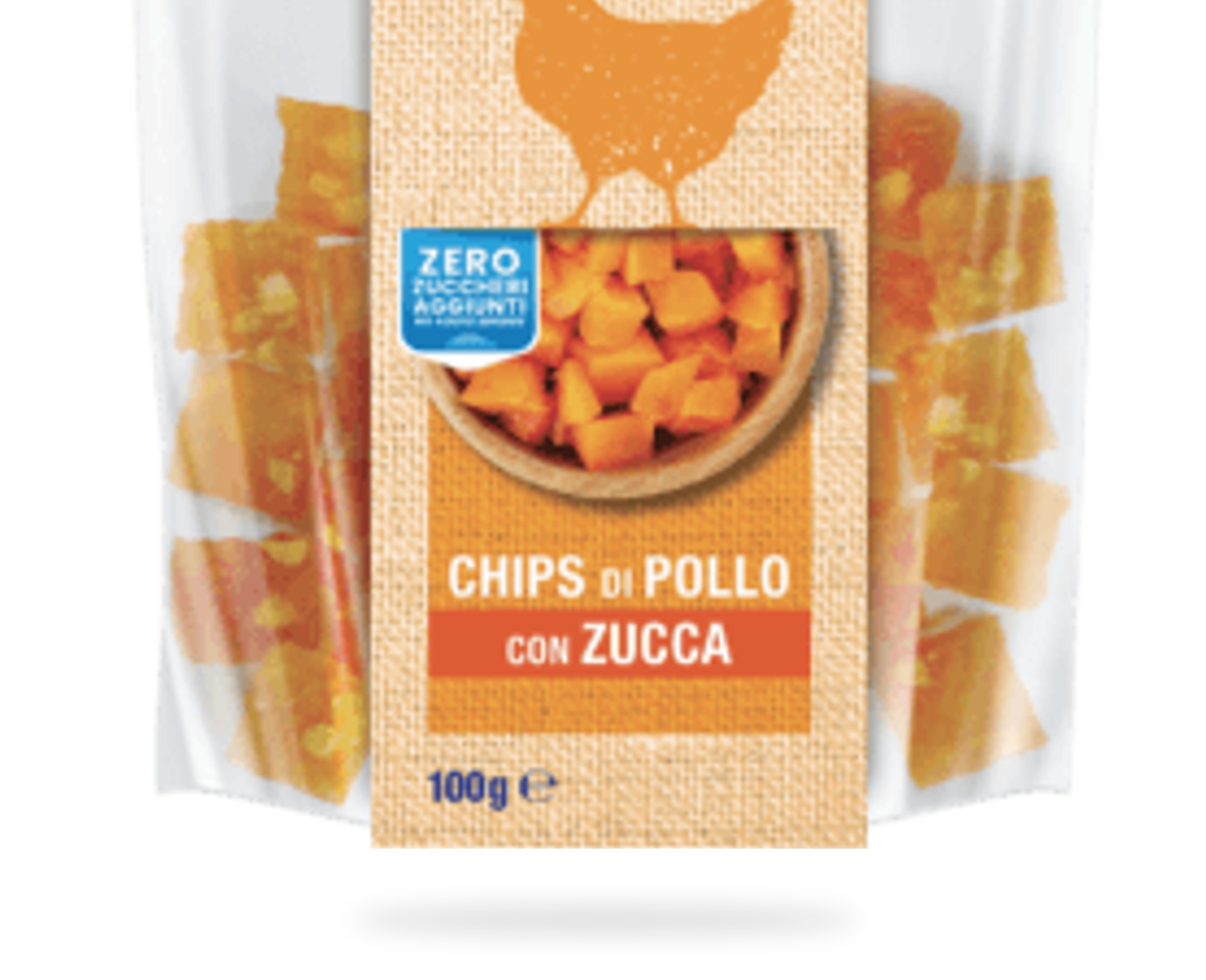 Delisnack Superfood Chips di Pollo con Zucca: snack sano e gustoso per cani. Con il 82% di pollo e il 5% di zucca, privo di zuccheri, coloranti e aromi artificiali.