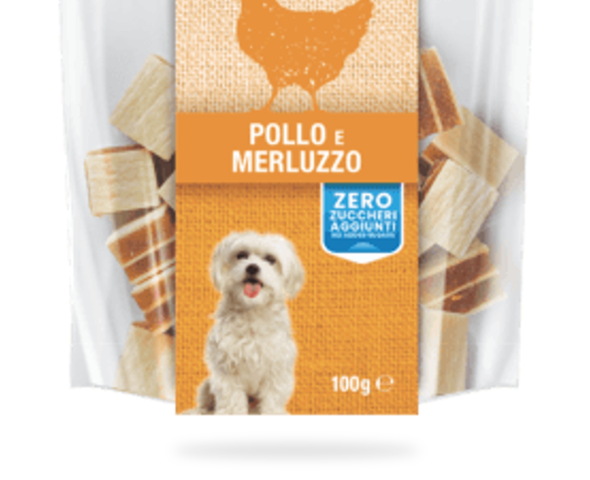 Snack per cani di piccola taglia con pollo e merluzzo, ricco di carne e pesce, privo di zuccheri aggiunti, coloranti e aromi artificiali. Ideale come premio.
